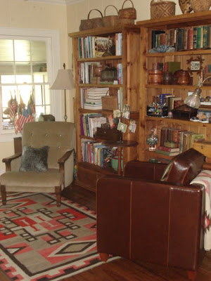 The library houses collections of Native American baskets, antique books, marbles, and Navajo blankets.