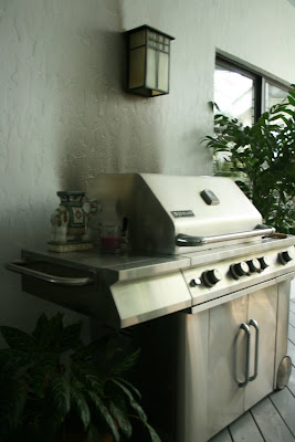 This is where we grill since it is just off of the kitchen. Yes, I am crazy, I accessorized the grill with a vintage ceramic elephant. I need help.